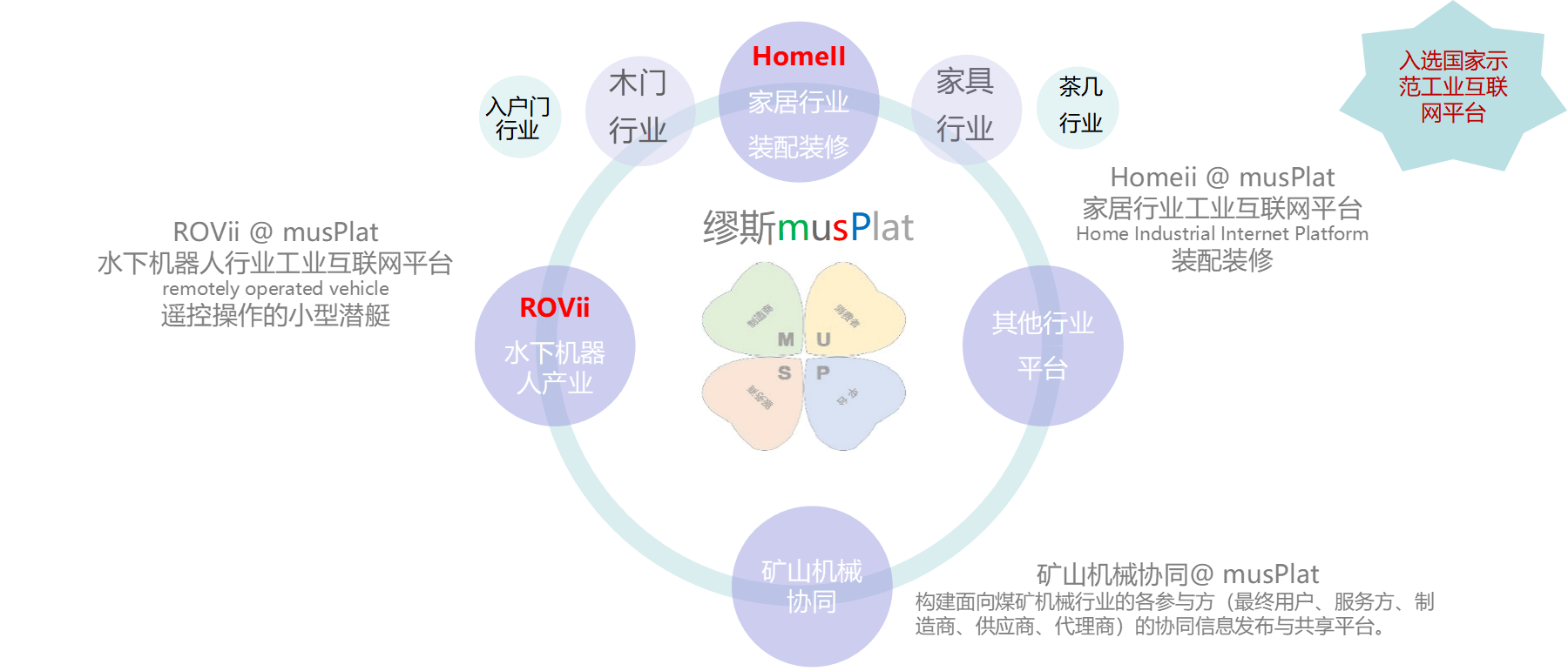 以社會(huì)再生產(chǎn)的四個(gè)過(guò)程,生產(chǎn)、分配、交換、消費(fèi)為要素構(gòu)建的工業(yè)互聯(lián)網(wǎng)數(shù)學(xué)模型稱為“繆斯模型”。 繆斯工業(yè)互聯(lián)網(wǎng)平臺(tái)簡(jiǎn)稱“繆斯平臺(tái)”,是構(gòu)建垂直行業(yè)工業(yè)互聯(lián)網(wǎng)平臺(tái)的母平臺(tái)。 我們提供構(gòu)建垂直行業(yè)工業(yè)互聯(lián)網(wǎng)平臺(tái)的診斷、咨詢、設(shè)計(jì)、開發(fā)、實(shí)施和代運(yùn)營(yíng)等服務(wù)。 已有行業(yè)案例涉及家居、機(jī)械、水下機(jī)器人等。
